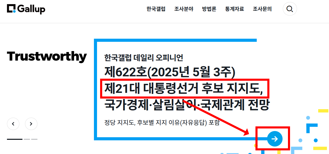 - 매주 대선 후보 지지율을 발표하며, 언론 보도와 갤럽 홈페이지에서 상세 결과를 볼 수 있습니다.